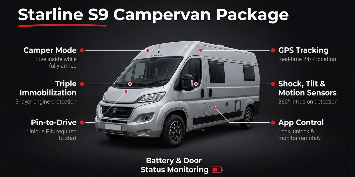 When you are traveling in a campervan, your vehicle is more than just a mode of transportation; it is your home, your sanctuary, and the keeper of your valuable possessions. The Starline S9 Campervan Security Package is meticulously designed from the ground up to provide unparalleled protection specifically tailored for campervans and motorhomes . This advanced smart security-telematic system integrates cutting-edge technology to ensure that whether you are sleeping inside or exploring away from your vehicle, your campervan remains secure.